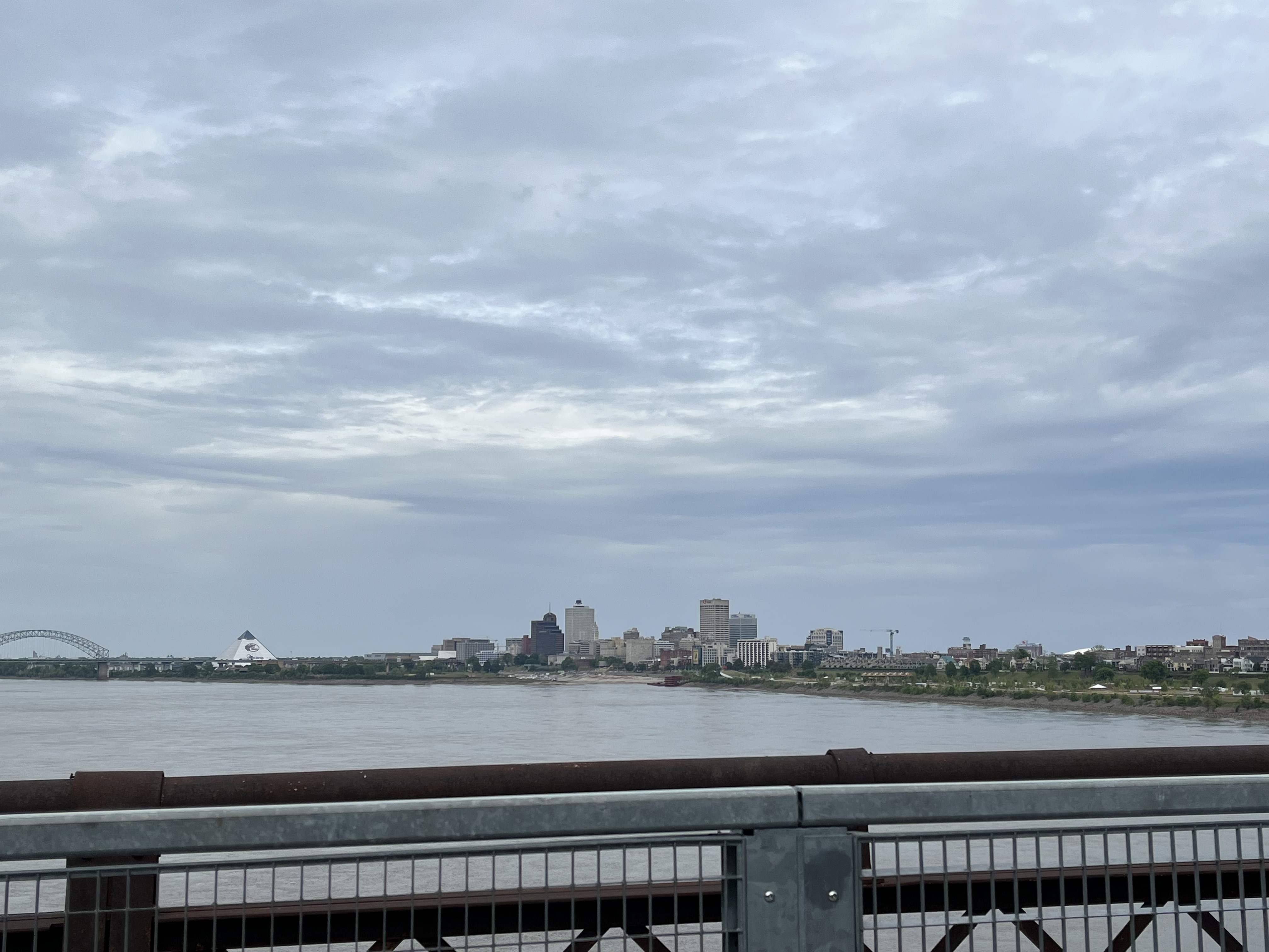 We kept dry for 60 miles into Memphis, TN, but were disappointed in the Mississippi River Levee because you can’t see the river from on top of the embankment, which is covered with crumbly gravel.